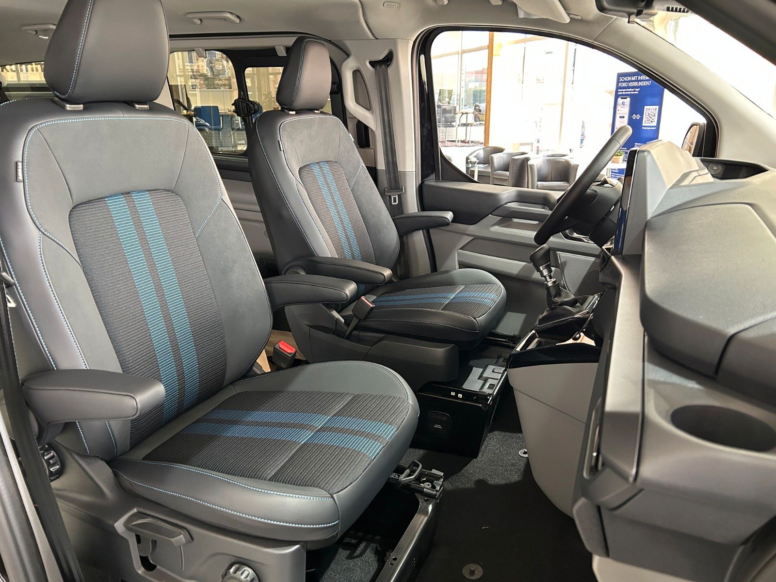 - Teil-Kunstlederbezug Sport, Sitzmittelbahn in Stoff in Digital Aqua, Polster in Kunstleder-Velours in Black Onyx, Sitzrückseite und -seitenwangen in Sensico-Kunstleder in Black Onyx