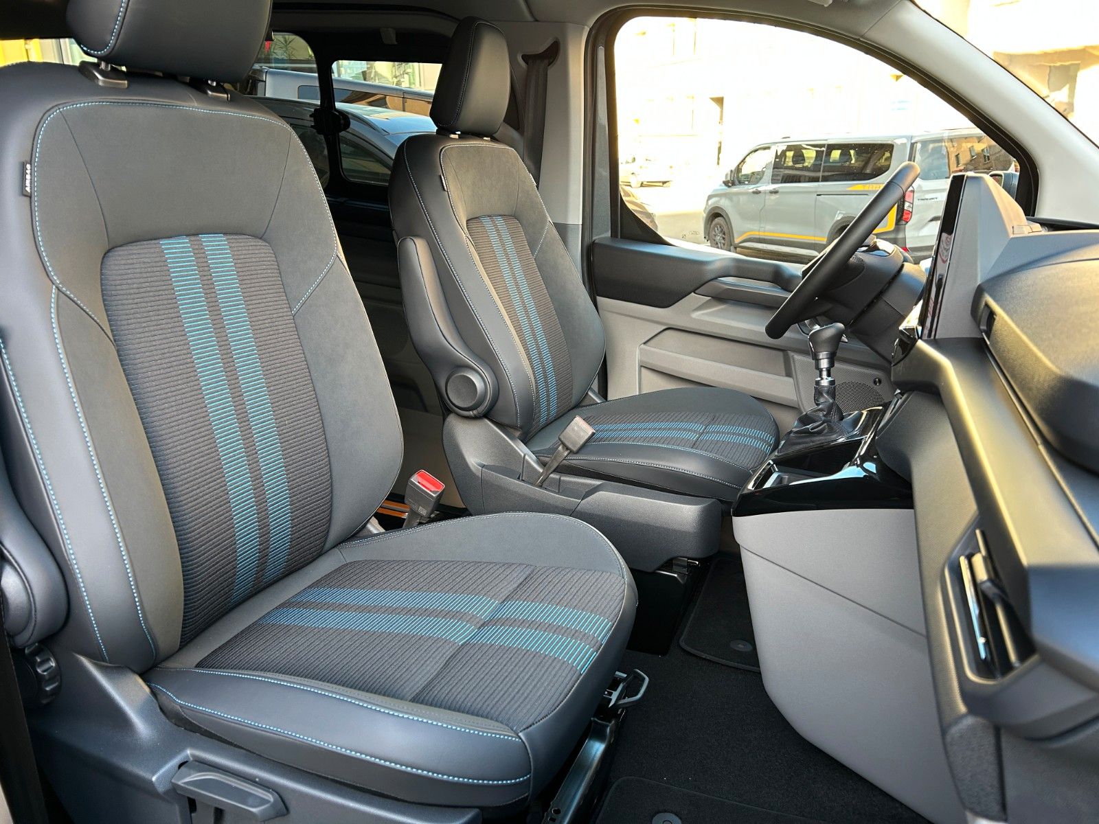 - Teil-Kunstlederbezug Sport, Sitzmittelbahn in Stoff in Digital Aqua, Polster in Kunstleder-Velours in Black Onyx, Sitzrückseite und -seitenwangen in Sensico-Kunstleder in Black Onyx